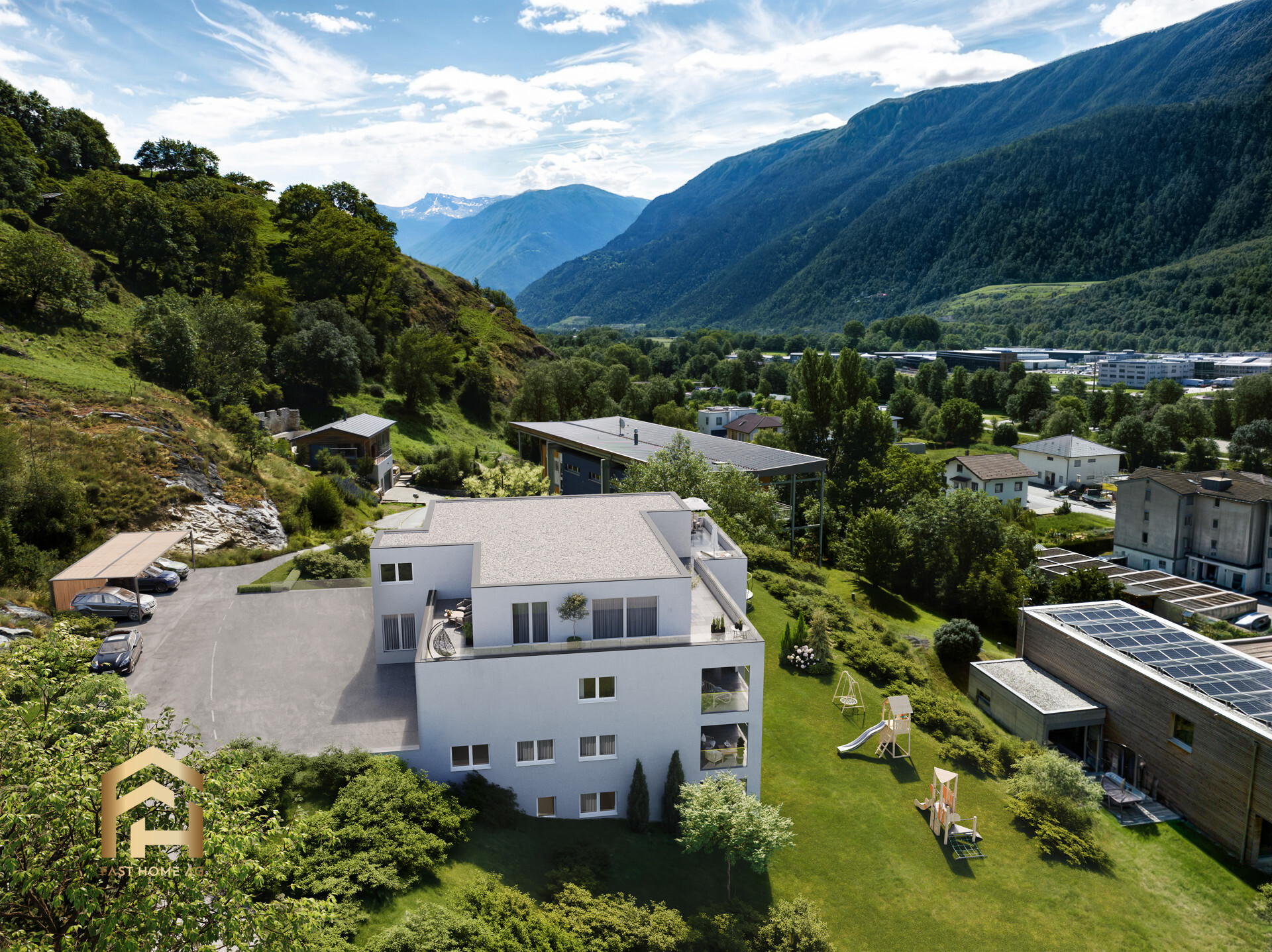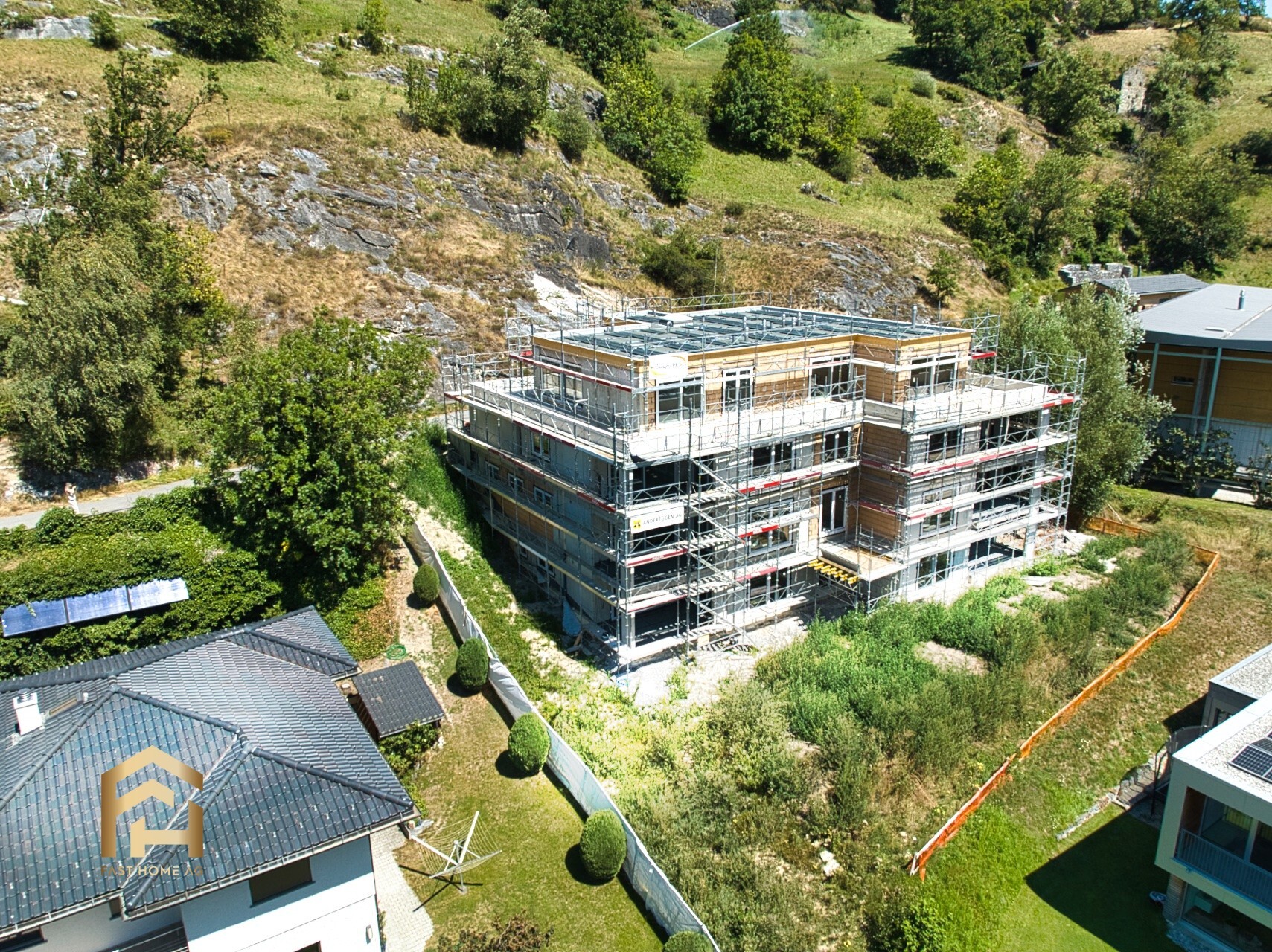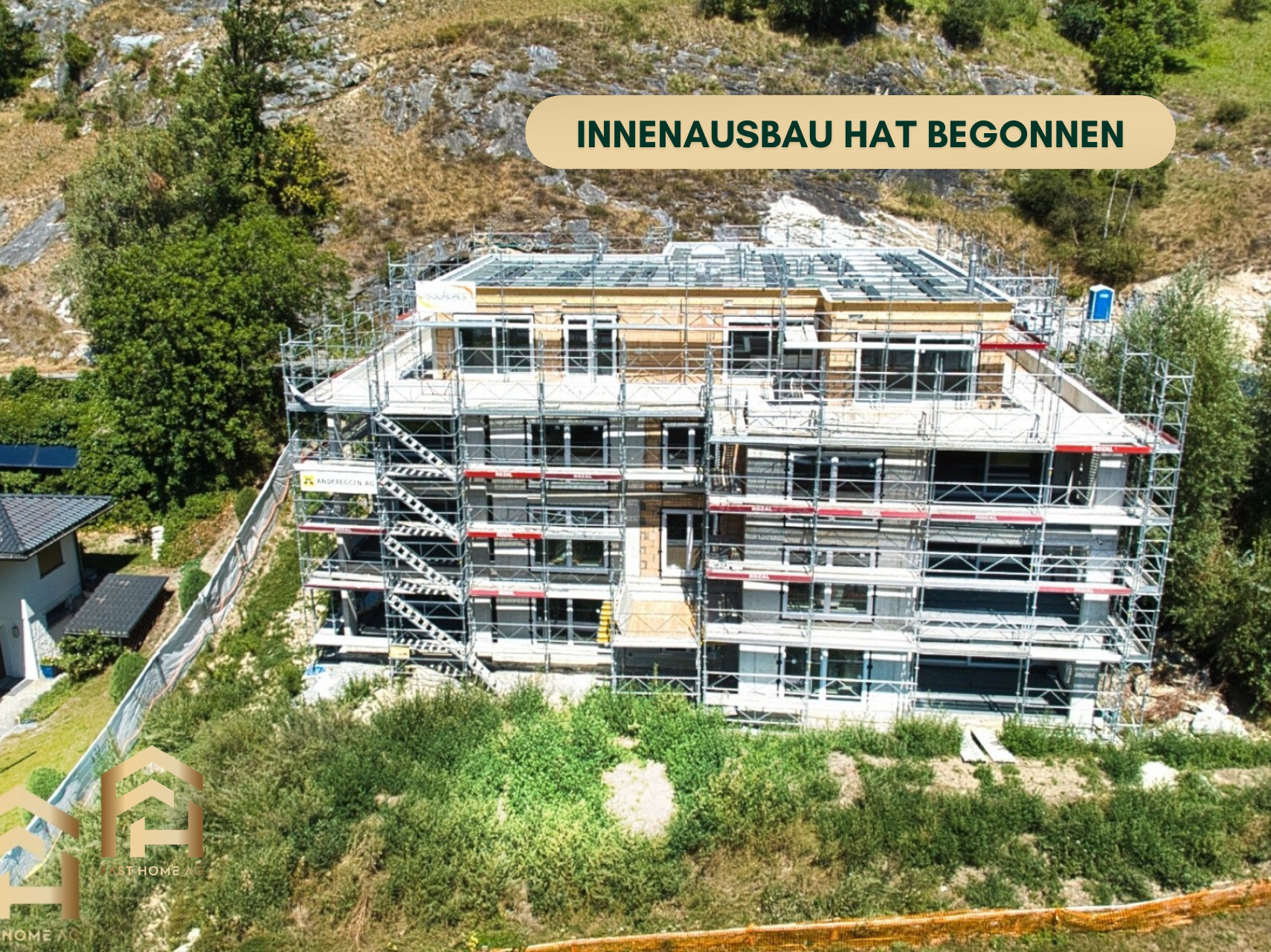 An der Stegbinenstrasse 69 in 3942 Raron wird ein modernes Mehrfamilienhaus auf vier Etagen mit hohem Ausbaustandard realisiert. Die Überbauung umfasst acht Wohneinheiten und bietet den Bewohnern einen idyllischen und schönen Umschwung. Der äusserst attraktive Standort bringt durch die Südhanglage viele Sonnenstunden, Ruhe, Momente zum Geniessen und eine atemberaubende Aussicht auf das Dorf und die umliegende Bergwelt mit sich. Das Gebäude befindet sich leicht abseits des Dorfzentrums, was zu einer ruhigen und angenehmen Wohnlage beiträgt.