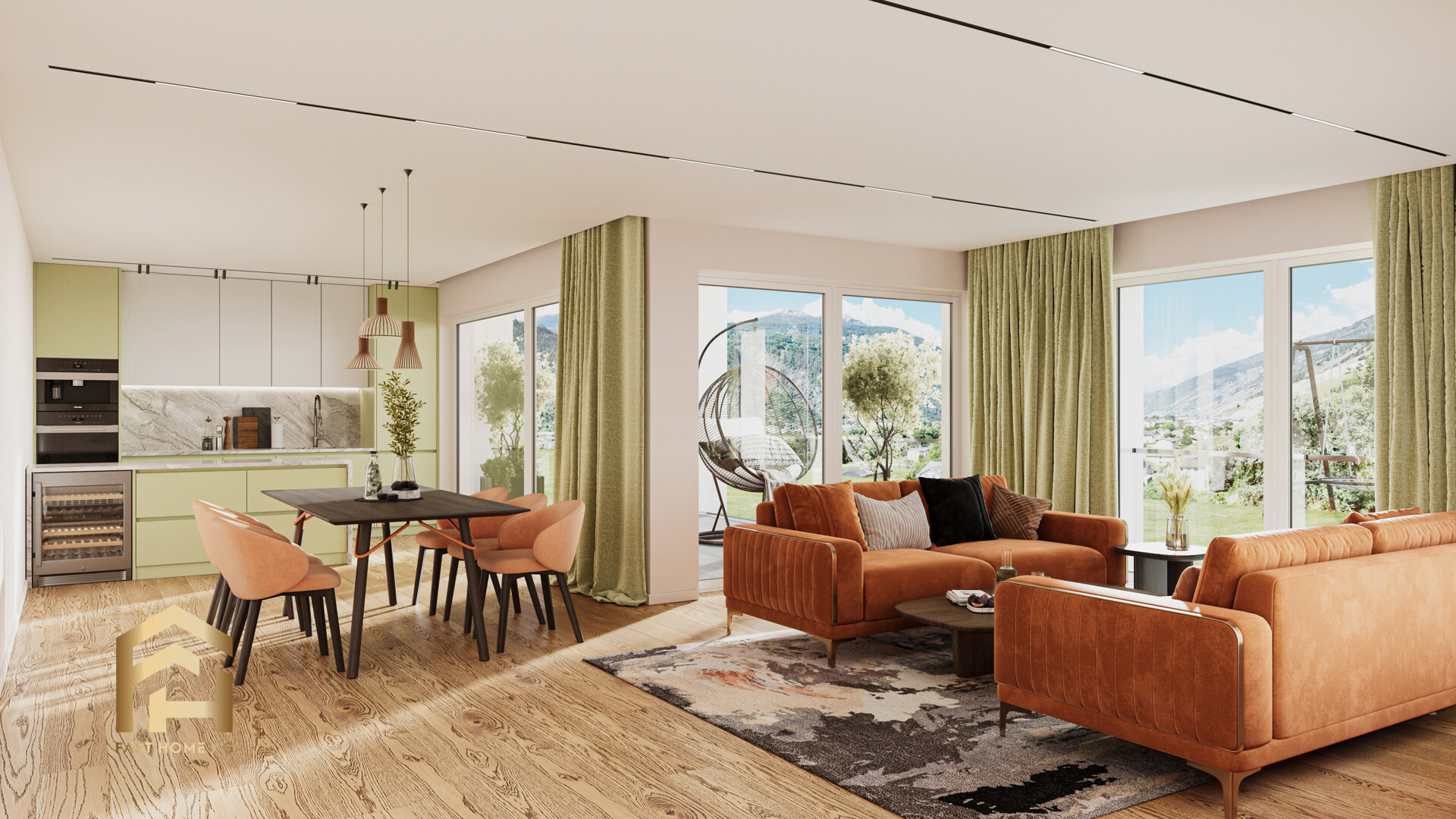 Ein Lift oder Treppenstufen führen in die 1. Etage, wo sich die grosszügige und luxuriös ausgestattete 4.5 Zimmer Wohnung mit 167 m² Wohnfläche und 14 m2 Balkonfläche, befindet. Individuelle Wünsche in Bezug auf die Küchenauswahl, den Boden oder das Design der Nasszellen können nach Absprache berücksichtigt werden. Gestalten Sie Ihr eigenes Zuhause mit Ihren Ideen, um in Ihrer Traumwohnung leben zu dürfen.