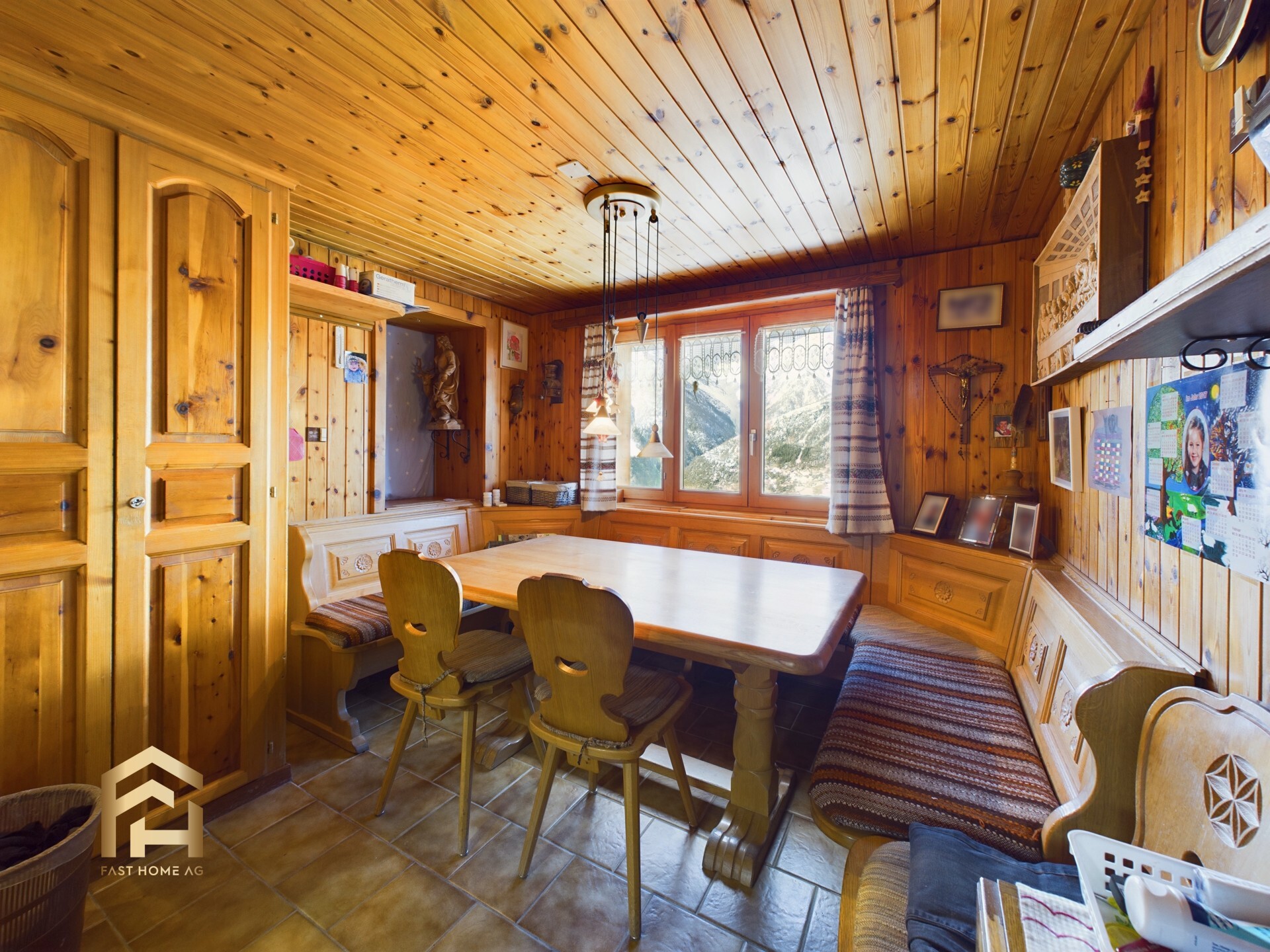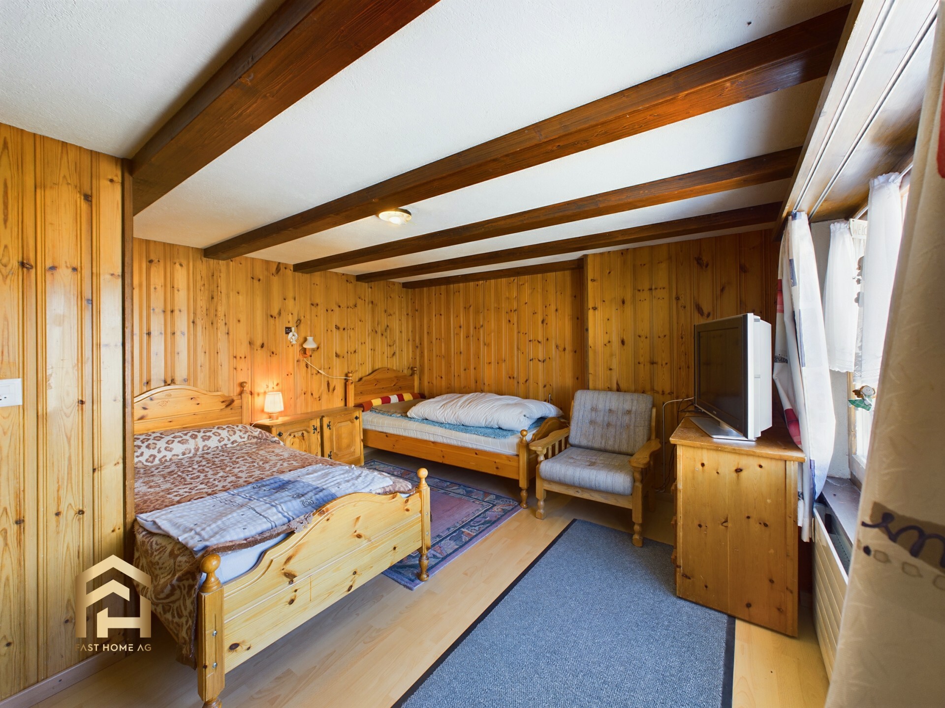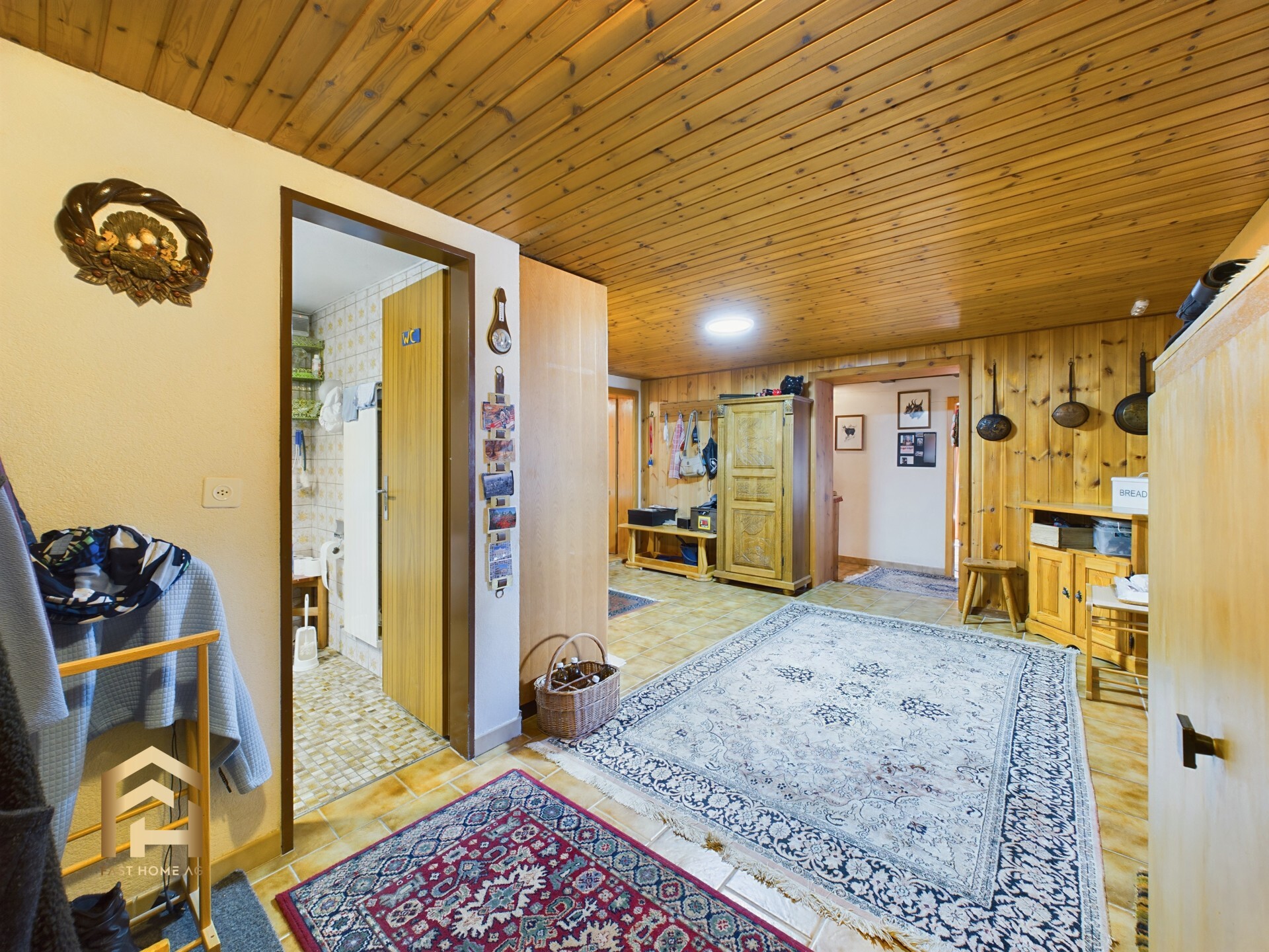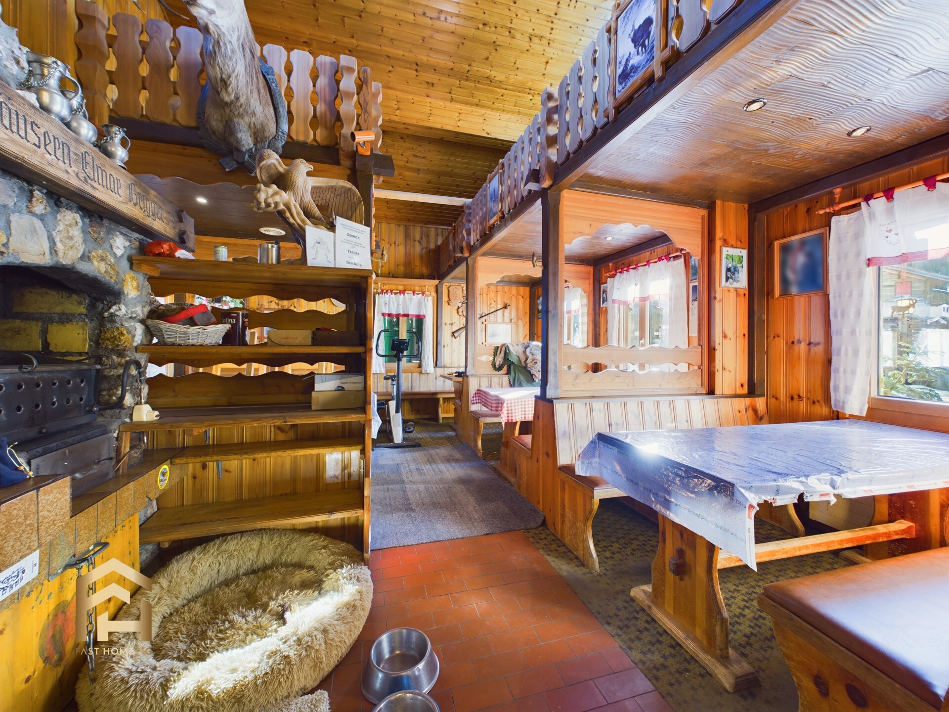 Das Restaurant verfügt über vier Zimmer in den Untergeschossen, die als Rückzugsort für das Personal dienen. Zusätzlich bietet die im Chaletstil ausgebaute 4.5-Zimmer-Wohnung im Untergeschoss den idealen Wohnbereich für eine Familie.
